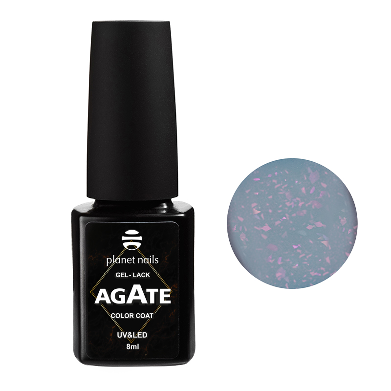 Гель-лак "AGATE" - нежнейшие оттенки гель-лаков, вдохновляющие любого мастера на создание самых смелых творческих идей в дизайне ногтей. В состав добавлены фольгированные частицы, цвета имеют полупрозрачную текстуру. Профессиональный гель-лак Planet Nails "AGATE " обеспечивает ровное покрытие, стойкий насыщенный цвет, не скалывается и не стирается.