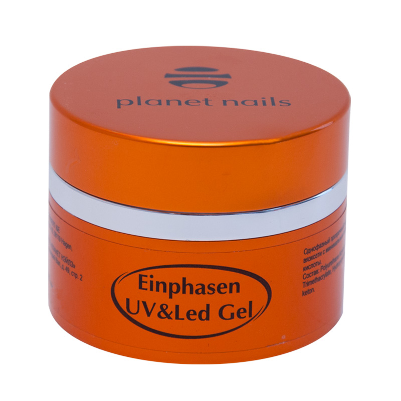 EINPHSEN UV/LED GEL - однофазный гель. Моделирующий однофазный гель обладает средней степенью вязкости, самовыравнивание, легок в нанесении. Концептуальный однофазный гель, совмещающий в себе фазы базового, моделирующего, конструирующего а также завершающего покрытия. Используется для моделирования искусственных ногтей на формах и типсах. Повышенная адгезия с натуральным кератином, в том числе с поверхностью очень влажных и тонких ногтей подчеркивает его оригинальность. Благодаря повышенному содержанию УФ-компонентов обладает низкотемпературным свойством. Гель рекомендуется использовать для удлинения свободного края ногтя при моделировании на формах, а также для ремонта, армирования, использовать в работе с очень чувствительными ногтями. Не рекомендуется для моделирования ногтей экстремальной длины. Гель абсолютно прозрачен после полимеризации, формула геля гарантирует длительную фиксацию, придает верхнему покрытию прочность и блеск. Полимеризуется как в UV лампе, так и в LED