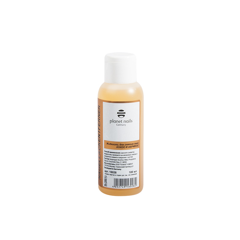 Жидкость для снятия лака без ацетона Planet Nails - Nagellackentferner кокос и абрикос 100мл.